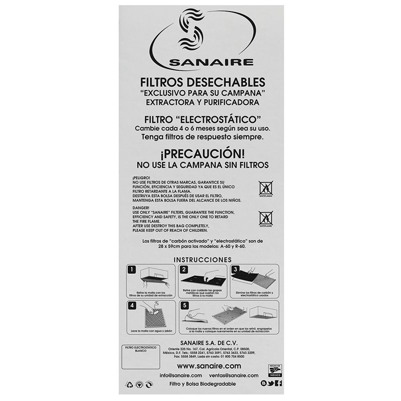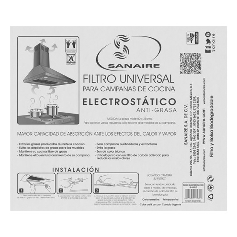 Filtro para Campana Electrostático (blanco) Universal (1 Pieza) Sanaire