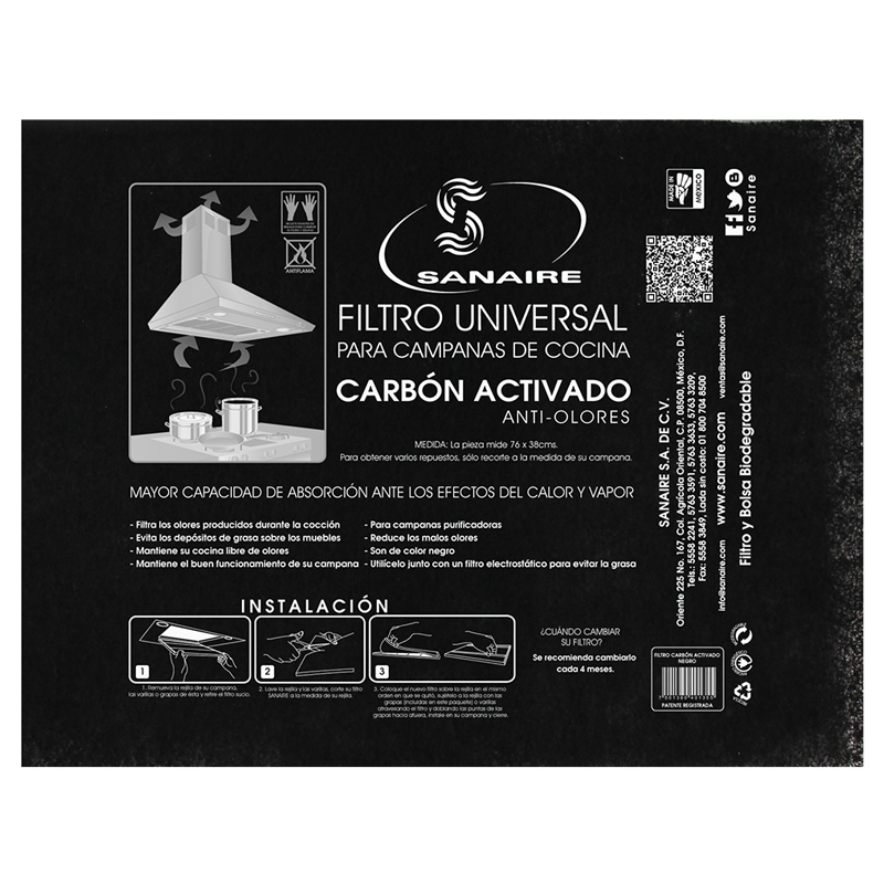 Filtro para Campana Carbón Activado (negro) Universal (1 Pieza) Sanaire