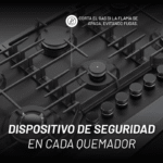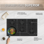 | Quemadores | 1 Quemador inferior izquierdo triple 3.5kw 1 Quemador central superior rápido 3.0kw 2 Quemadores superiores semi-rápidos 1.75kw 1 Quemador inferior central semi-rápido 1.75kw 1 Quemador inferior derecho auxiliar 1.0kw |